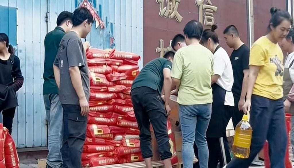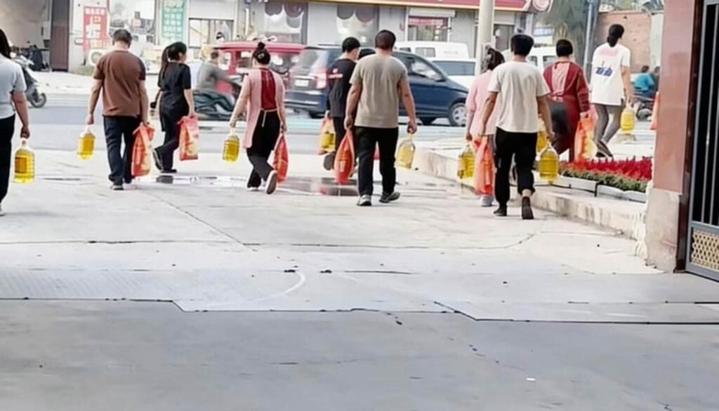 The distribution site is well-organized. Employees either wait patiently or help carry the items. Red benefit bags and edible oil are passed among the crowd, and every movement is filled with holiday joy, turning the workplace into a warm “reunion station” in an instant.