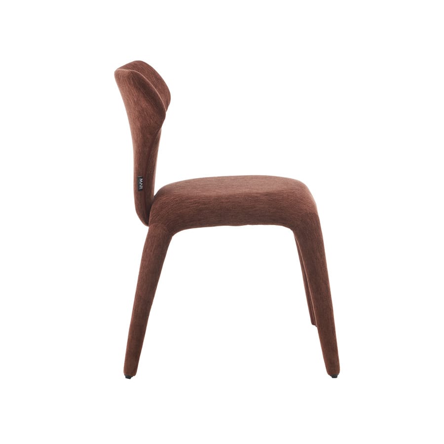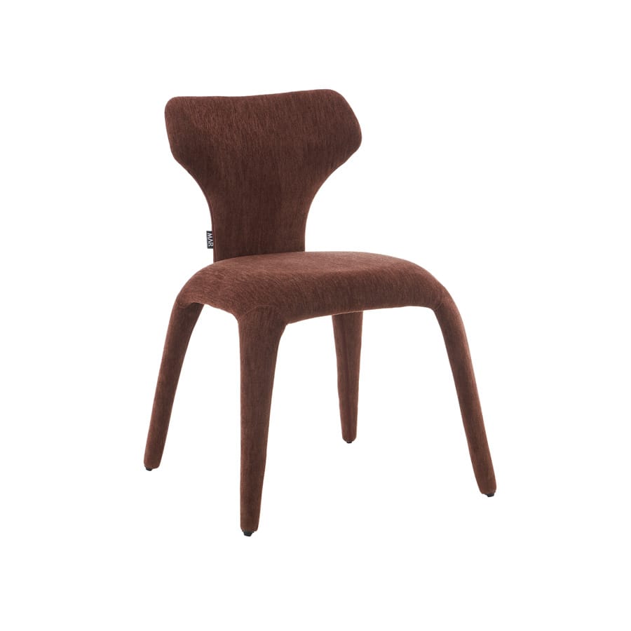 Textured Fabric Dining Chair (Brown) Organic sculpted backrest in warm brown textured fabric, with curved tapered legs for a lightweight yet sturdy build. Combines artful design with everyday functionality, suited for dining rooms, breakfast nooks, or accent seating—complementing earthy, modern, and industrial decor styles.