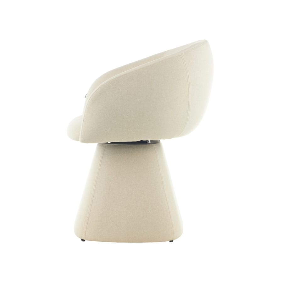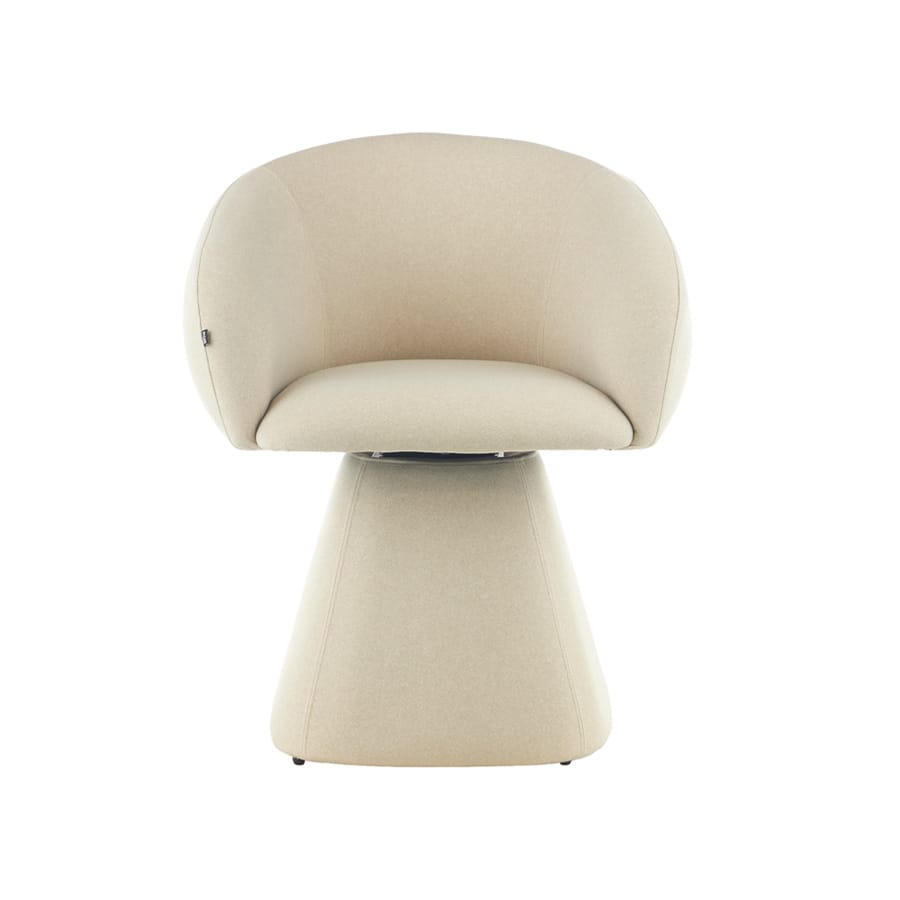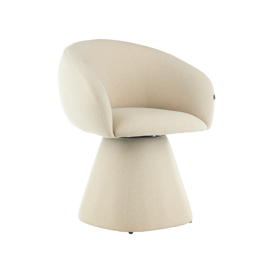 Modern Swivel Barrel Accent Chair Sleek curved barrel silhouette in soft cream fabric, featuring a sculptural tapered base and 180° swivel function. Combines retro-modern style with cloud-like comfort, perfect as a statement accent for living rooms, bedrooms, or reading nooks—elevating contemporary and minimalist interiors effortlessly.