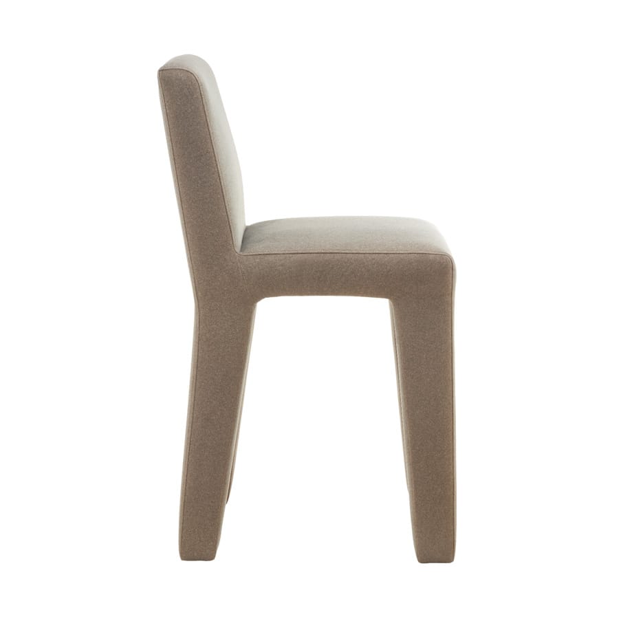 Monolithic Upholstered Dining Chair (Taupe) Sleek seamless frame dining chair in soft taupe fabric, featuring a minimalist armless design and tapered legs for a streamlined silhouette. Delivers subtle elegance and ergonomic support, perfect for dining rooms, breakfast nooks, or modern living areas—complementing neutral, Scandinavian, and luxe decor styles.